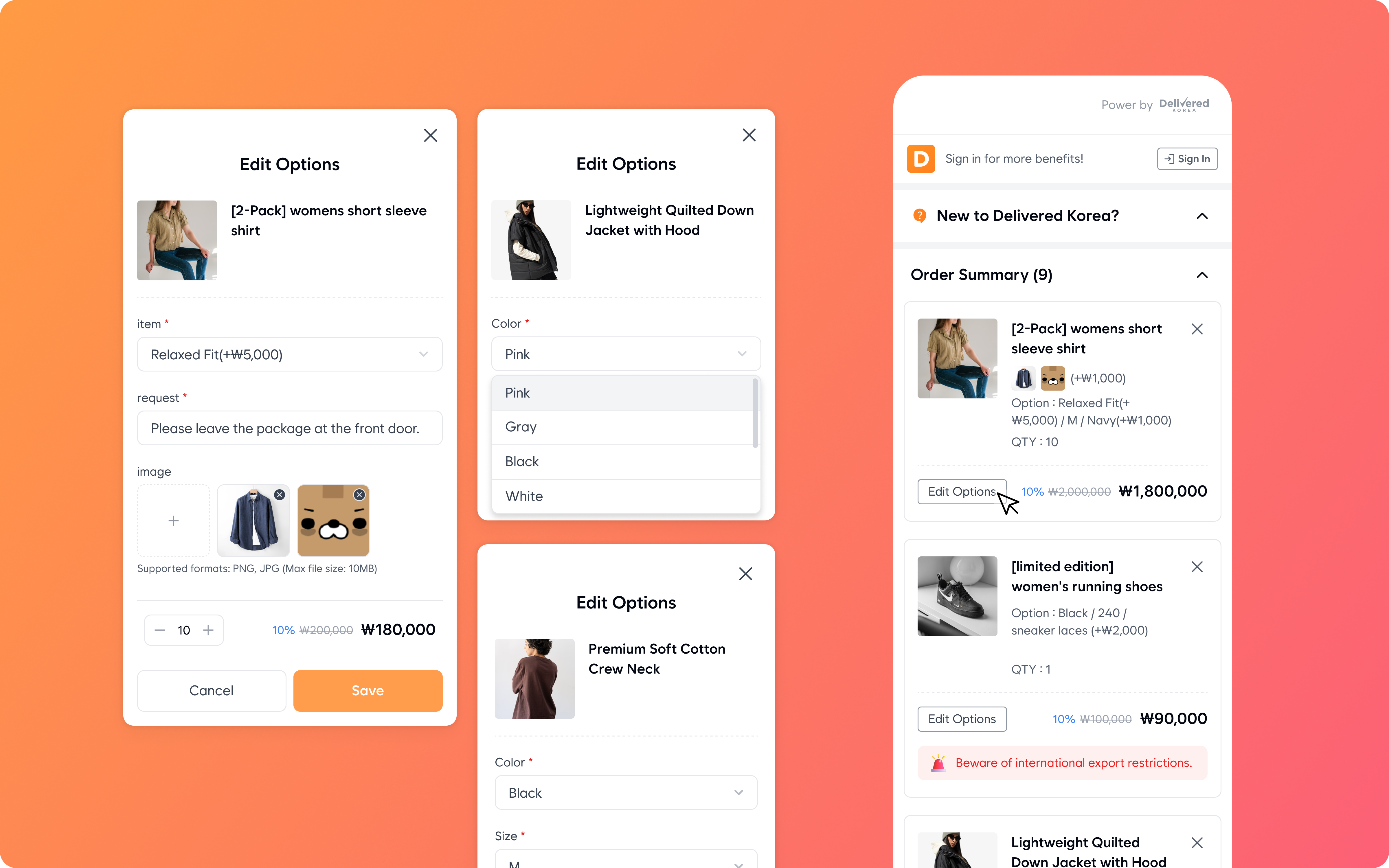 - 최소/최대 수량 제한 설정 가능